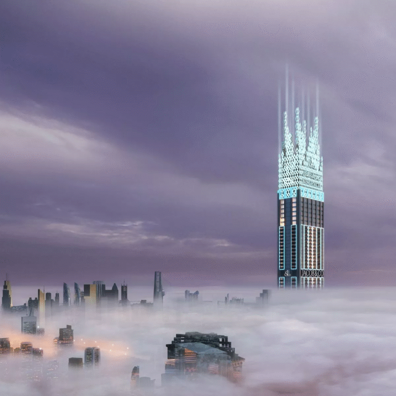 Exclusively fashioned for the elite, the uber-exclusive development will feature stylized elements inspired by Jacob & Co’s horological and design philosophy. The distinctive feature of the exquisite design will be a breathtaking crown at the highest altitude of Burj Binghatti Jacob & Co Residences, displaying signature Jacob & Co diamonds.