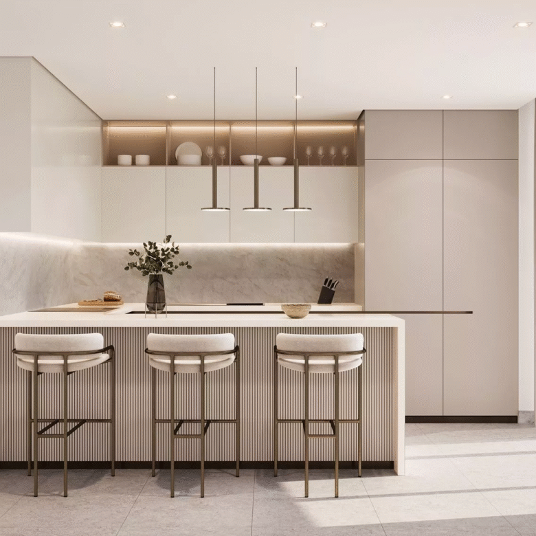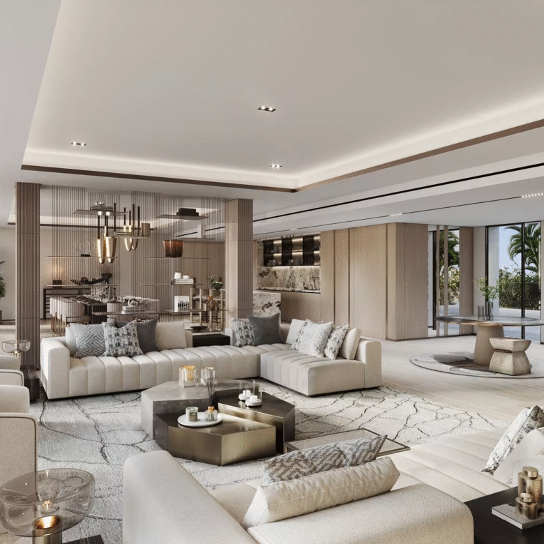 The gorgeous villas feature oversized terraces, an indoor & outdoor TV viewing area, a lounge space, dining spaces with BBQs, a rooftop lounge and terrace, a gym, a study or office, a room for a pool table or piano and more. Select units contain a private swimming pool. These residences are also distinguished by exclusive gardening, travertine & stucco facades, metal & mashrabiya accents and imported European wood flooring.