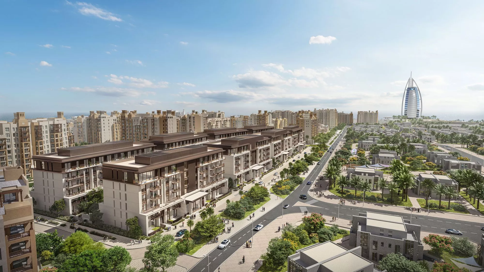 The total living areas of properties in the complex range from 796 sq. ft to 3,418 sq. ft, whilst the layouts will include one or more balconies overlooking the Burj Al Arab and the sea. Select units will also include a private terrace and a staff room, for the utmost convenience of homeowners.