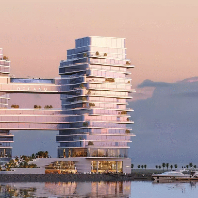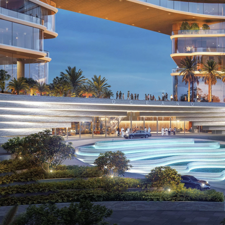 Oceano is a premium residential development by The Luxe Developers on Al Marjan Island in Ras Al Khaimah. Overlooking the Arabian Gulf, the complex will consist of 2 twin 17-storey towers, which will have free flowing glass facades with minimalist frames. The entrance of Oceano will wow occupants and guests alike with a dynamic cascading fountain and landscaping.