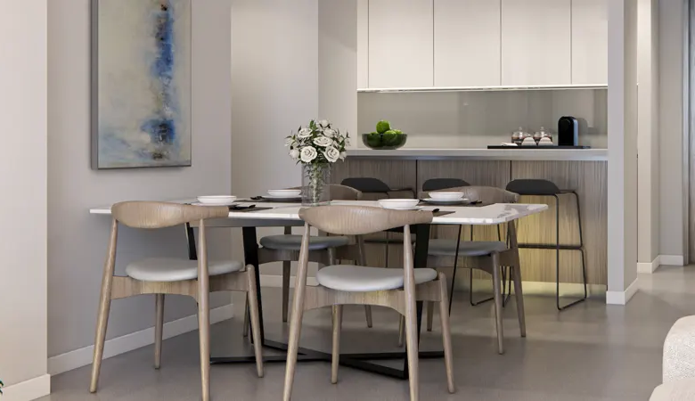 The design philosophy revolves around creating a harmonious blend of modern aesthetics and eco-friendly features. From the sleek kitchen cabinets to the fully tiled bathrooms, every detail exudes sophistication and functionality. With central air conditioning, built-in wardrobes, and en-suite bedrooms, each unit is thoughtfully crafted to cater to the discerning tastes of its residents, ensuring the utmost comfort and convenience at every turn.