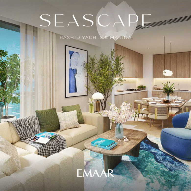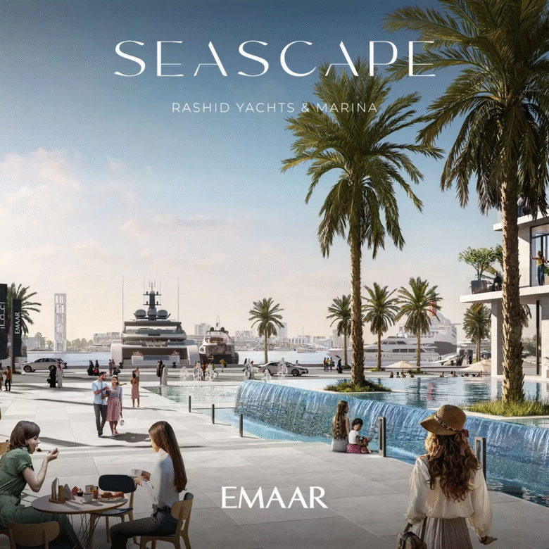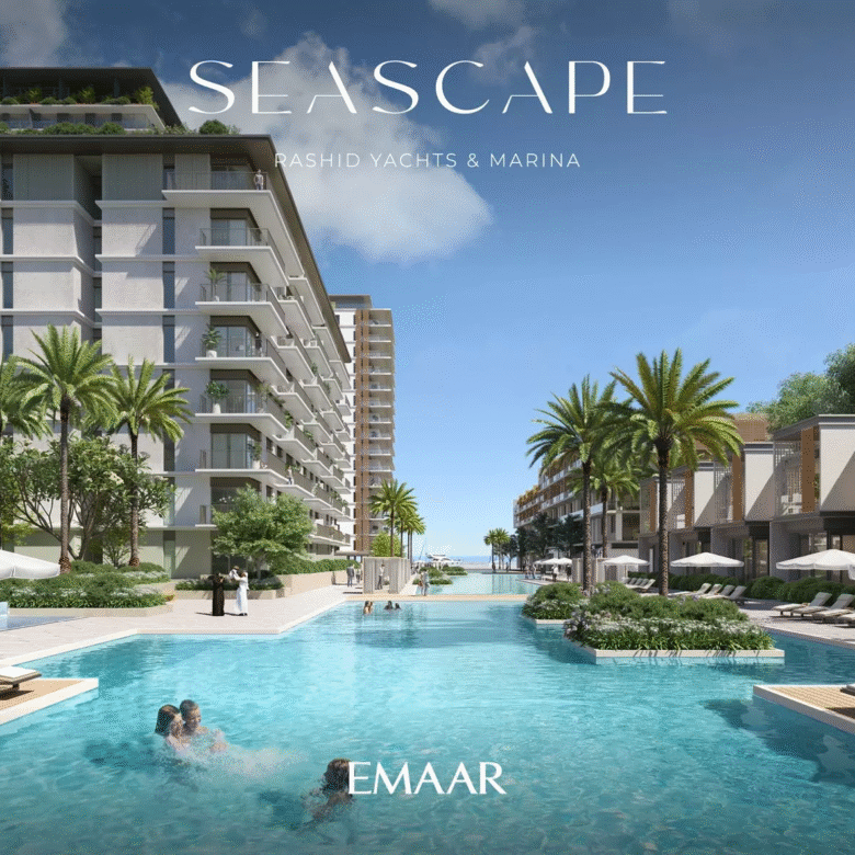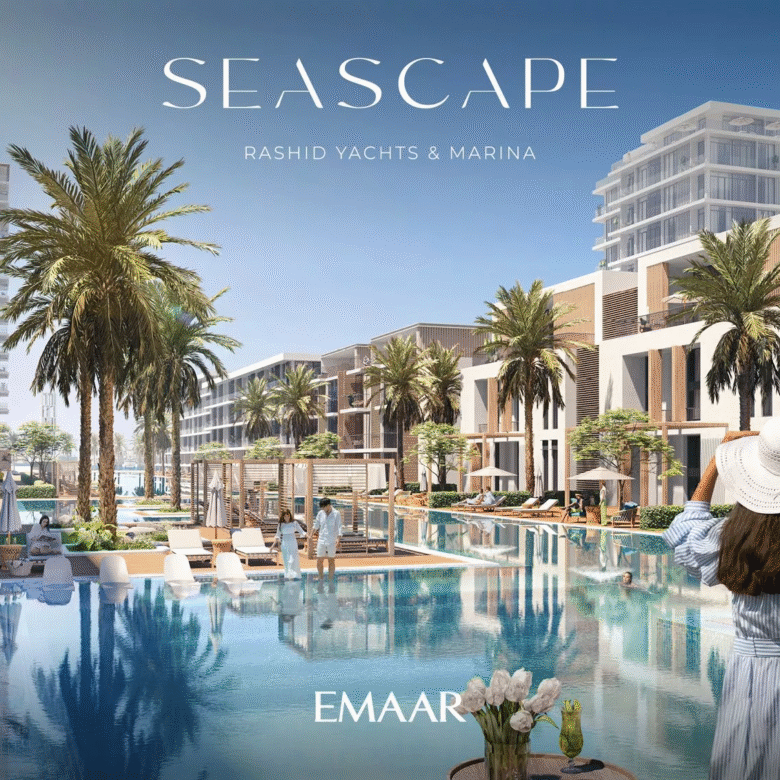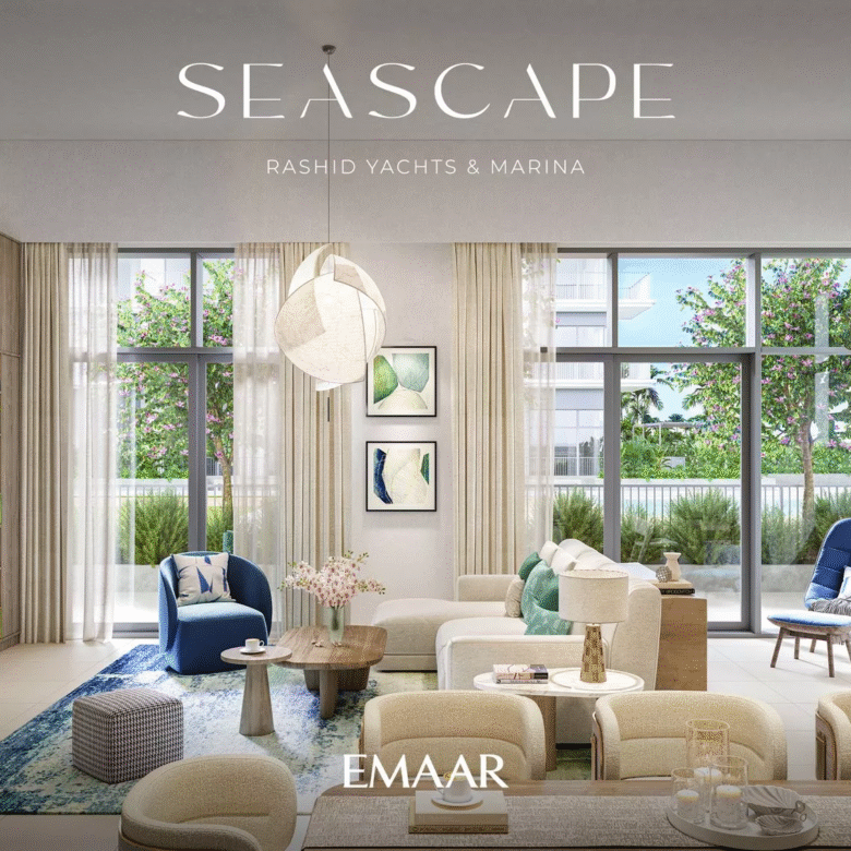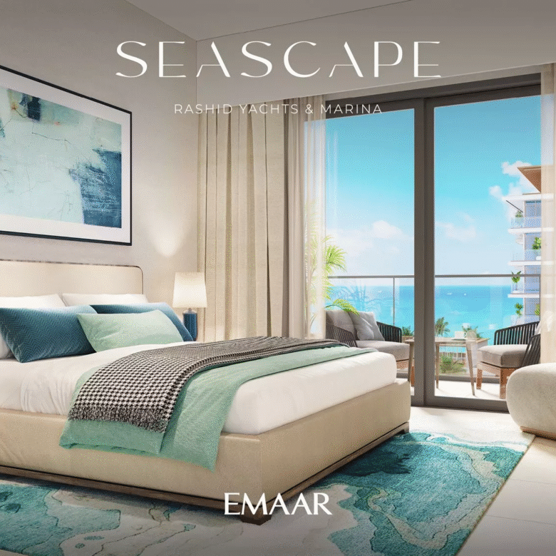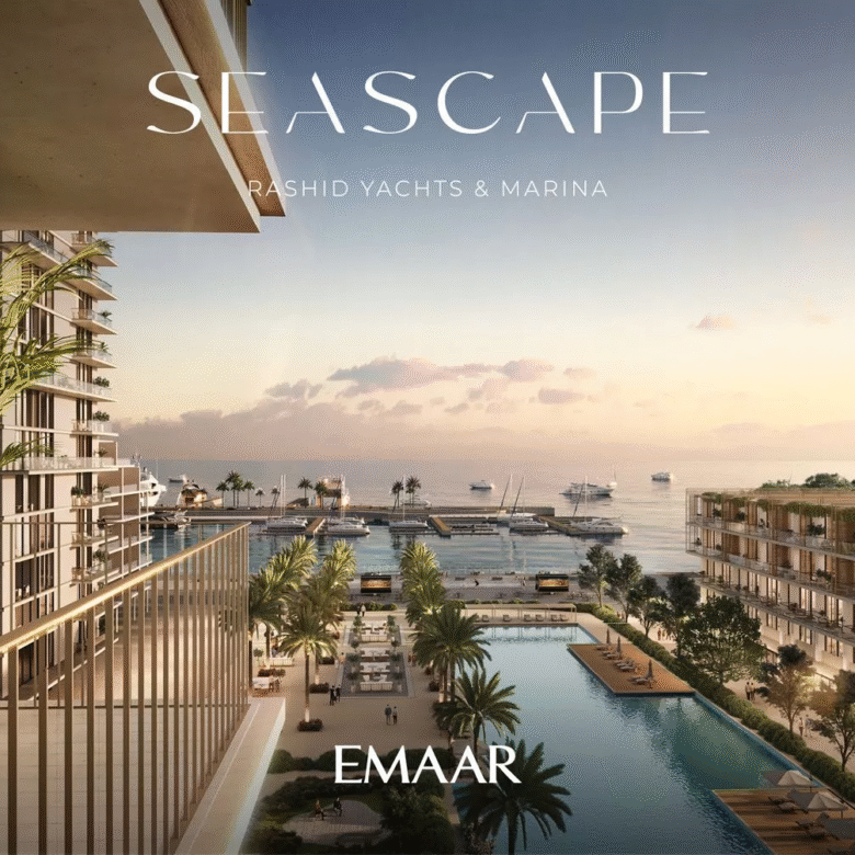 Seascape, launched in Q4 2022, is a prime residential development by Emaar Properties in the vibrant area of Rashid Yachts & Marina. The project will consist of 4 buildings, ranging from 6 to 18 floors, and offers a selection of meticulously designed 1–3 bedroom apartments. There will also be 20 generously-sized 2-storey 3-bedroom townhouses available for purchase. In total, there are 391 residential units in the upcoming complex.