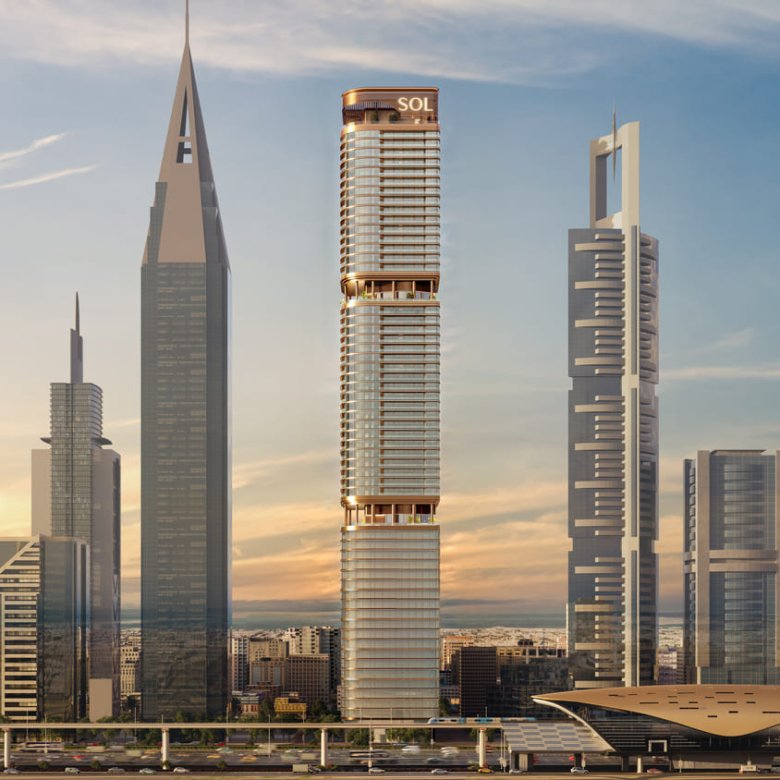 Sol Luxe is a prestigious residential development located on Sheikh Zayed Road. The apartments offer direct views of Downtown Dubai and the Burj Khalifa, along with panoramic vistas of the sea and the Burj Al Arab. With its prime location just one minute from the DIFC Metro Station, the project ensures exceptional connectivity and provides a perfect balance of urban energy and refined living.
