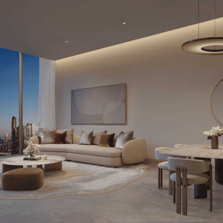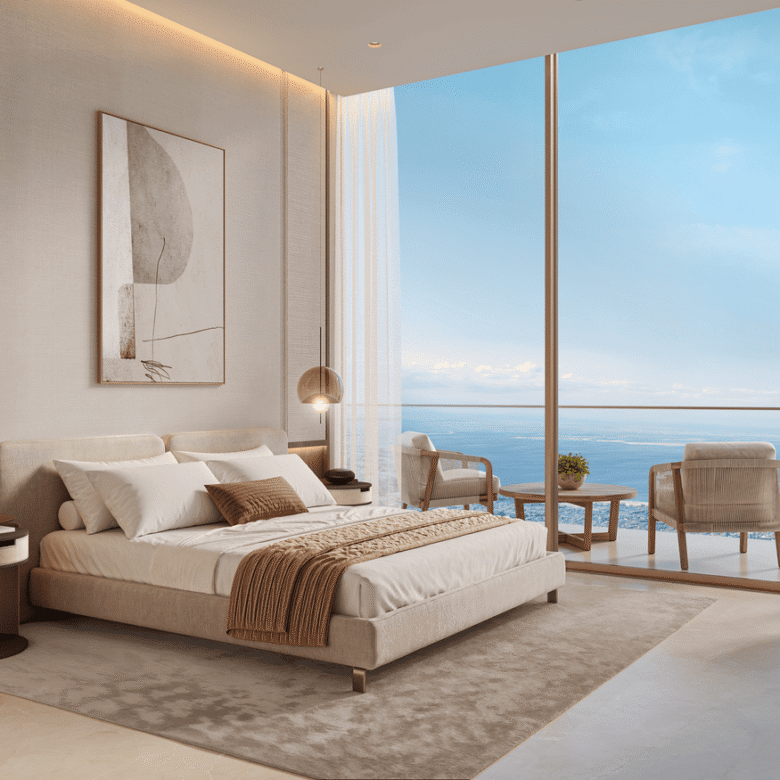 The development features spacious 1-, 2-, and 3-bedroom residences with study rooms, thoughtfully designed to suit modern lifestyles. Floor-to-ceiling windows flood the interiors with natural light. Elegant layouts, high ceilings, and premium finishes create a sense of refined sophistication, while open-plan living areas seamlessly combine functionality and style.