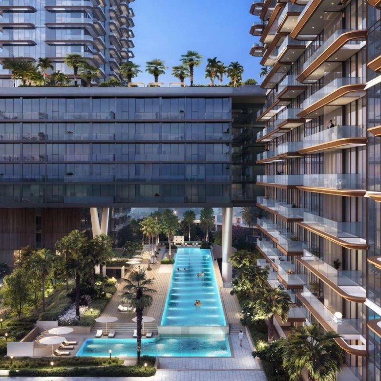 The development features a wide variety of residences, including studios, one-, two-, and three-bedroom apartments, as well as exclusive four-bedroom penthouses. Each home is thoughtfully designed with open layouts, premium finishes, and generous balconies that maximize natural light and capture stunning views of the Arabian Gulf and Al Hamra Golf Course.