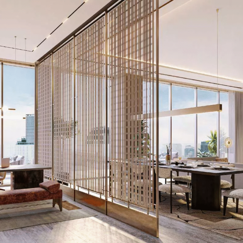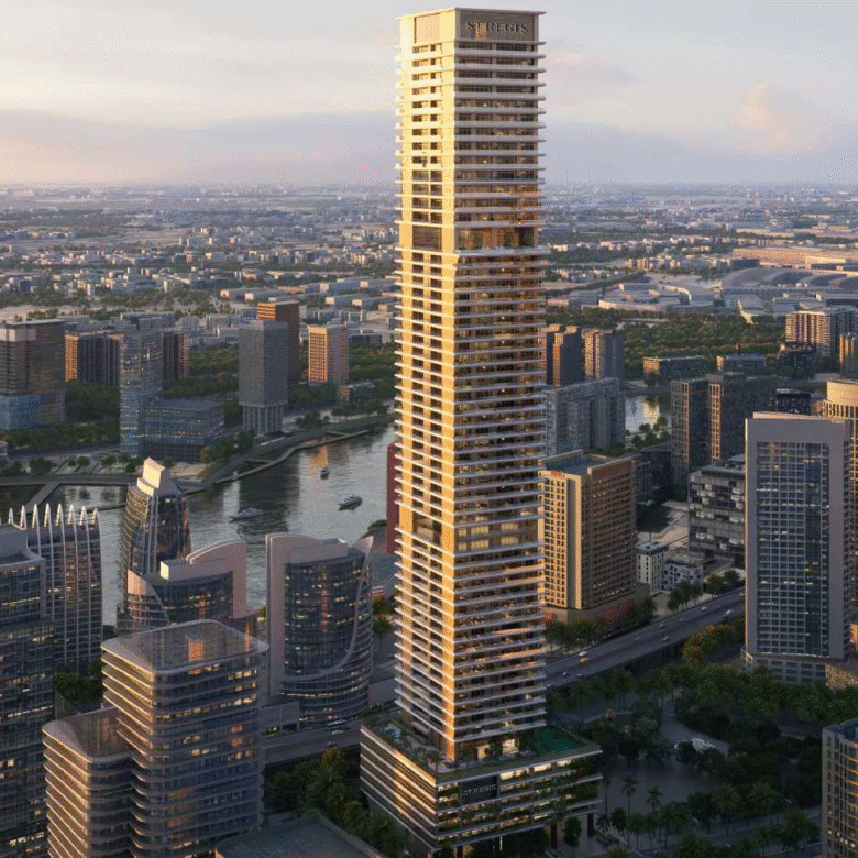 Overlooking the gorgeous Burj Khalifa, The St. Regis Residences, Financial Center Road, Dubai is a premium residential addition to the portfolio of the coveted Downtown Dubai. The 63-storey (B+G+M+4P+55+R) development by Adventz Group and East & West International Group features a bespoke collection of sophisticated 1 & 2 and 4-bedroom apartments, as well as super-luxury half floor and full-floor 4-5 bedroom penthouses. The estimated size of the properties in this beautiful development range from 970 sq. ft to 9,325 sq. ft. There will be from 1 to 6 units located on each floor of the gorgeous complex.