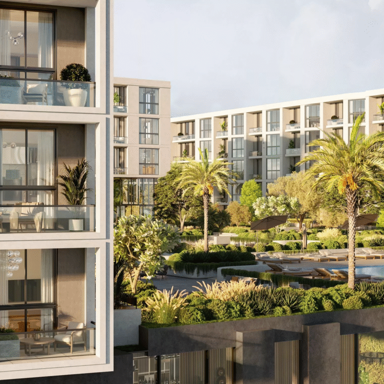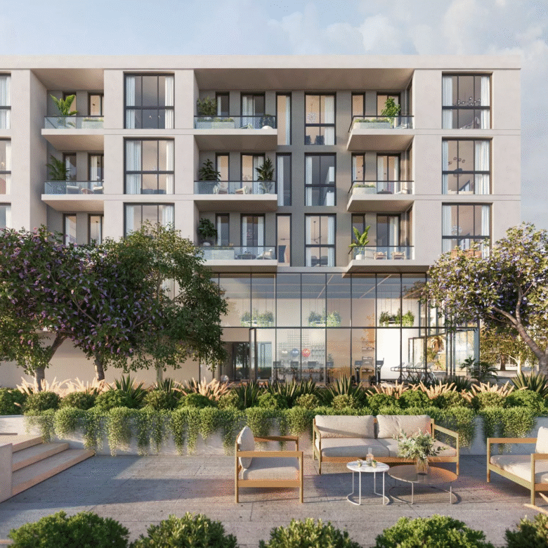 Terrazzo is a premium development by Taraf, the real estate division of the investment holding group Yas Holding, in Jumeirah Village Circle (JVC). It consists of 2 six-floor buildings, with 1–3 bedroom apartments ranging in size from 771 sq. ft to 2,121 sq. ft. The floor plans feature one or more balconies and terraces, whilst the 3-bedroom residences will be additionally equipped with a maid’s room. The nature-inspired decor will be executed in warm earthy green, brown and blue colours.